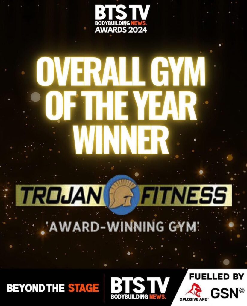 We are thrilled to announce that Trojan Fitness has been recognised as a leader in the fitness industry, winning not just one but two prestigious awards at the Beyond the stage TV Bodybuilding News Awards 2024! (checkout BTS TV here – https://www.instagram.com/beyondthestagetv_/)
